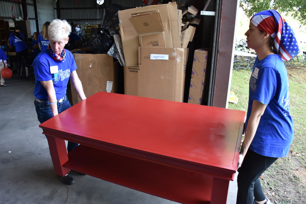 - County commissioner offered us an 8,000 sq. ft. warehouse free of charge for 8 weeks. This was an absolute lifesaver for this project. IT enabled us to get all of our project supplies delivered and staged before Saturday, and store the finished product as we continue to work with local nonprofits to come and get the furniture to provide to Puerto Rican families.